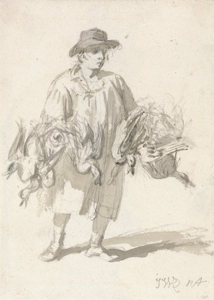Curator: Here we have Giovanni Domenico Tiepolo's "Caricature of a Gentleman and Other Studies," made between 1727 and 1804. The artist used ink on paper to create this interesting artwork. Editor: My initial impression is of playful exaggeration—look at that pronounced nose! It's clearly meant to poke fun at the aristocracy. But more than that, it reveals a keen eye focused on social dynamics. Curator: I see echoes of commedia dell'arte, don't you think? The exaggerated features certainly evoke familiar archetypes. This almost functions as a visual language speaking to the manners of the time. Editor: It is all in the lines and what they convey: the rapid strokes suggest a process that embraces improvisation, which, given the subject, fits the overall attitude here. He is mocking the very consumers of the art that he is making. Curator: Precisely! Notice how the array of faces seems to express diverse facets of society. They create a dialogue around the central figure, almost as though to remind him, or perhaps the viewer, about the spectrum of human characteristics. Editor: Right. Also, thinking about it now as an artist's tool... consider the material restraints in 18th century Venice! Paper and ink—relatively inexpensive—allowed Tiepolo to iterate ideas freely, explore character types. It makes you wonder, what other economic imperatives were at play here? Curator: Definitely something to consider, as are the multiple interpretations embedded in this medium. Its enduring appeal reminds us of the human propensity to both criticize and celebrate, to analyze both the real and imagined reflections of society. Editor: Absolutely, it goes beyond the material limitations of art production; the subject here reminds us about the complexities of human ego. These caricatures seem even relevant to our age, even though our era looks very different from 18th century Venice.