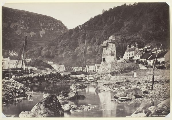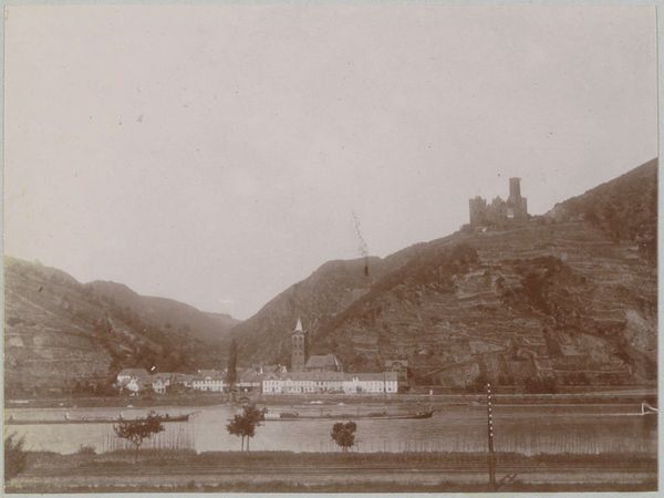 Editor: We’re looking at "Gezicht op Sankt Goarshausen aan de Rijn met Burg Katz," taken sometime between 1900 and 1906. It depicts Sankt Goarshausen, Germany, along the Rhine, complete with Burg Katz perched above. It’s… very brown! And rather imposing. What strikes you about this piece? Curator: The sepia tone lends an air of antiquity, doesn’t it? But look closer – consider Burg Katz, its strategic placement. Cat imagery, particularly a fortress named after it, might symbolize vigilance, protection, and even a touch of cunning. Does it resonate with historical accounts you know? Editor: I guess it gives off a "guarding the town" sort of vibe. I didn't really think about the cat angle! Curator: Exactly! Then observe the river, the Rhine. Rivers are powerful symbols – conduits of commerce, cultural exchange, but also boundaries and potential dangers. What stories might that water tell if it could speak? Editor: It would probably talk about all the trade that went through! It's so interesting to think about how location shapes not only how a place looks but its whole story, too. Curator: Precisely! And that story echoes through time. The architecture, the geography, even the light...it's all encoded. This photograph captures not just a place, but layers of meaning we're still interpreting today. Editor: Wow, now I'm looking at it from a completely different angle. Thank you.