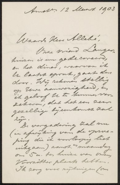This is a letter to Philip Zilcken, written by Arij Prins at an unknown date. The materials are humble: paper and ink, deployed in the most direct way possible, handwriting. The quality of the paper, its slight discoloration, and the ink used all convey a sense of personal touch. The handwritten script becomes a form of intimate exchange, with the penmanship revealing aspects of Prins’s character and frame of mind. In a time when personal communication was more tactile and deliberate, penmanship was highly valued. The act of handwriting itself is a slow, deliberate process. Each stroke is a direct transfer of thought to paper, making the letter a direct trace of the artist’s presence. We can imagine Prins carefully forming each word, reflecting on his message as the ink flows from the pen. In our digital age, a handwritten letter stands apart, inviting us to consider the value of labor, attention, and personal expression that it embodies. It prompts us to value the materiality and unique qualities inherent in crafted objects.