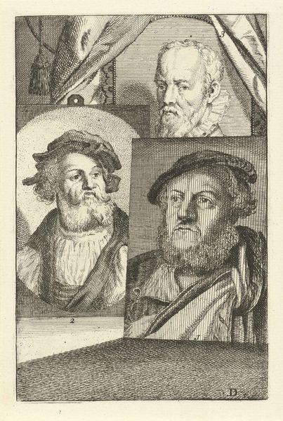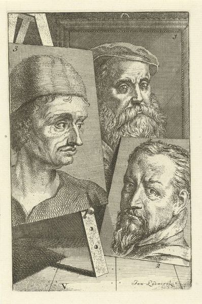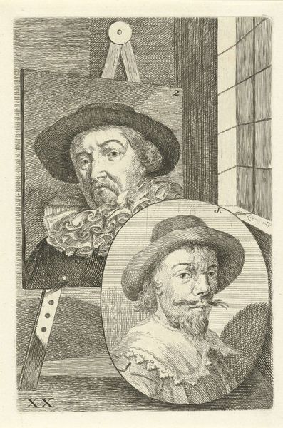 Jan L' Admiral created this print portraying Allaert Claesz and Barend Dircksz. The artwork emerges from a time of burgeoning capitalist expansion in the Dutch Golden Age, which saw the rise of a merchant class eager to commission art that reflected their status and values. Through its stark presentation, the print offers insight into the construction of identity during this period. Both figures, presumably members of the Dutch elite, are depicted with a seriousness that speaks to the sober self-fashioning characteristic of the era's Protestant work ethic. Yet, the seemingly objective portrayal of the figures raises questions. How does the artist negotiate the power dynamics inherent in portraiture? Consider how the almost clinical rendering of their features might reflect a desire for control and permanence. The artist invites us to reflect on the tension between the individual and the social forces shaping identity. The print functions as a mirror, reflecting societal values while also prompting us to question the nature of representation itself.