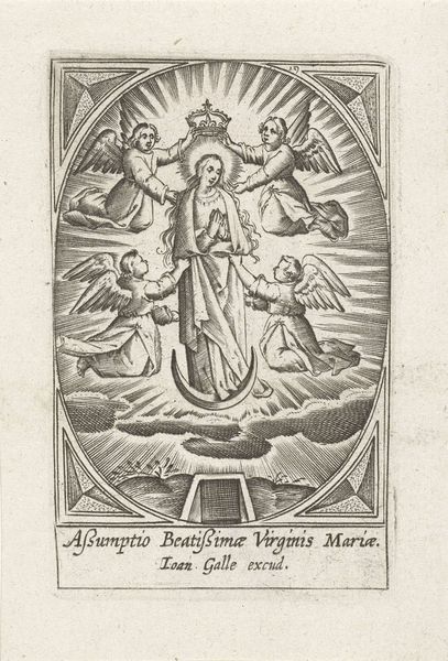 Editor: So, here we have "Maria als Mater Dolorosa," a 1723 engraving by Bernard Picart, housed in the Rijksmuseum. The striking imagery of swords piercing Mary’s heart evokes such a powerful sense of suffering. What aspects of its history and cultural relevance do you find most compelling? Curator: What I find compelling is how this image operates within, and perpetuates, the evolving narrative around the Virgin Mary in the 18th century. The Mater Dolorosa, or Mother of Sorrows, becomes an increasingly potent symbol during this period. We need to ask: What needs did this imagery fulfill for its audience? Editor: That's a great point. It feels like it’s not just a religious image, but a socio-political one as well. The public display of grief and empathy must have resonated deeply with communities facing their own hardships. How did prints like these circulate and reach such a wide audience? Curator: Precisely! These prints had incredible reach, circulated through devotional networks, personal collections, and even incorporated into other artworks. The act of replicating and disseminating these images contributed to their cultural power. Does the level of detail in the engraving give you any hints as to it’s role in society? Editor: Definitely! It almost suggests the maker valued the symbolism within the imagery more than using modern print styles. I didn't realise that printmaking itself could contribute to meaning! Thanks for broadening my understanding of this piece. Curator: And I learned from your insights! Examining art through this intersection helps us uncover the complex layers of meaning embedded within seemingly simple images.