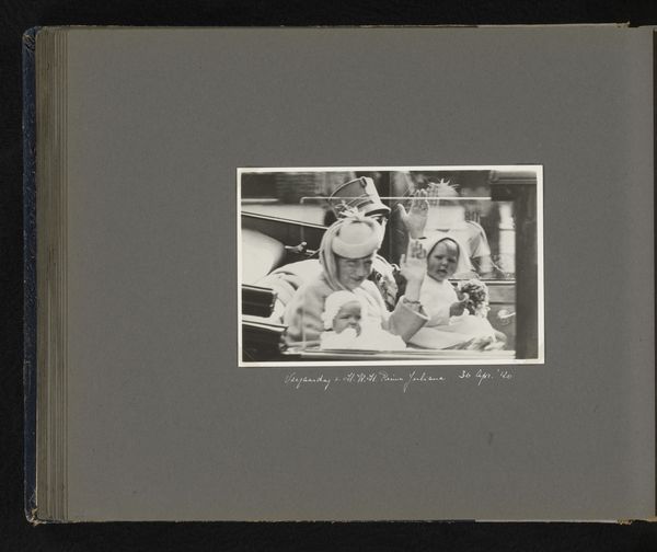 Editor: This photograph, called "Matrozen met hond" and created between 1940 and 1943, is a gelatin silver print at the Rijksmuseum. The image's grainy texture gives it an almost nostalgic feel, and I am curious how you interpret its formal aspects. Curator: I would suggest analyzing the photograph's tonal range. Note how the artist uses contrast—dark, hulking ship elements set against lighter figures and sky—to create visual tension. Observe the way the subjects' attire catches and reflects the light. How might that contribute to the photograph's compositional balance? Editor: So you're saying the high contrast contributes to the picture's overall dynamic? I hadn't thought about the interplay between the darker machinery and the bright clothes. Curator: Precisely. Further, consider how the framing directs our gaze. The dog acts as a nexus in the work's semiotic and compositional structure. Where do our eyes go first, and how do they move within the pictorial space? Does this tell a visual story? Editor: My eye definitely went straight for the dog, then followed the lines of the sailors' arms. It leads to the darker part of the boat, so in my eyes it is visually connecting foreground and background elements, creating a path. Curator: The deliberate structuring is what captures my attention as well. How the textures and luminosity function together generates a certain... atmosphere, perhaps. Does it prompt you to consider the unseen, the intangible elements evoked by the depicted scene? Editor: I can appreciate that perspective and the artist’s consideration in capturing not just sailors and a dog, but also an atmosphere that feels intimate. This new interpretation focusing on formal structures will impact my future approach to this artwork! Curator: Precisely! Focusing on inherent visual qualities can radically deepen one's appreciation.