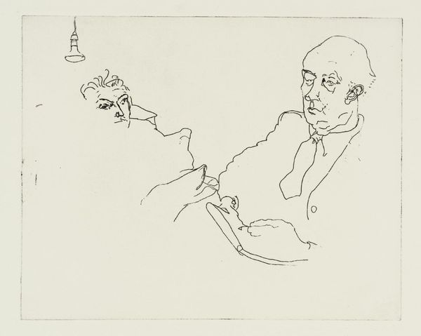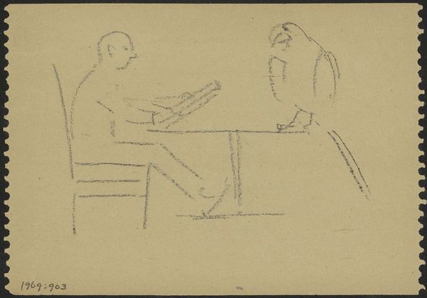 Editor: This is "Zittende vrouw, vermoedelijk Joanna Lion Cachet-Cordes, drinkend uit een kop," by Carel Adolph Lion Cachet, created around 1935 to 1940. It's a pen drawing, housed here at the Rijksmuseum. It has this kind of airy, unfinished feel that's almost dreamlike. What stands out to you in terms of the formal qualities? Curator: Note the emphasis is not on a faithful representation. The function of line here, it seems to me, is less descriptive and more suggestive. The artist captures the essence of the figure with an economy of means. Observe how the repetition of curvilinear forms generates rhythm, most evident in the suggestion of hair. Editor: So it’s more about capturing movement and form than precise detail. Curator: Precisely. One might read the rapid, somewhat nervous line as an index of the artist's own engagement with the subject, a sort of visual thinking aloud. Do you notice how the artist employs hatching and cross-hatching in certain areas? What do you make of this stylistic choice? Editor: It seems to add depth, right? Creating shadows and emphasizing volume, but in a really subtle way, that doesn't detract from the light airiness you were mentioning. It emphasizes planes on the figure and hints at a source of illumination. Curator: Precisely, this economy of line is indicative of an artistic methodology focused on pure form. It highlights an emphasis on structural underpinnings and proportional relationships. Ultimately, this is a testament to the power of reduction. Editor: It's interesting how much information can be conveyed with such simplicity! Thanks. Curator: Indeed. Focusing on composition allows for a deeper engagement. I’ve gleaned a fresh viewpoint myself.