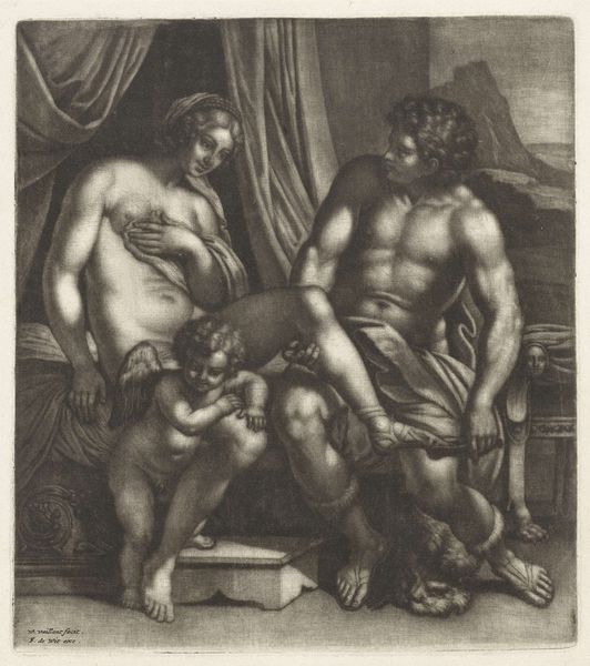 Editor: We’re looking at “Sarah Presenting Hagar to Abraham,” an oil painting by Bartholomeus Spranger. I am immediately struck by how much of the figures' bodies are revealed. What cultural ideas about beauty or the role of women in society do you think the artist was trying to represent here? Curator: That's a fantastic starting point. Let’s consider the Mannerist style and its popularity amongst elite circles during the period, say the late 16th Century. Spranger and other artists created work not necessarily to reflect societal norms, but to participate in courtly politics. How would depicting this biblical scene in such an erotic way reflect such political aspirations? Editor: Perhaps making these Biblical characters "sexy" gives them importance or reflects a heightened value for sensuality within royal court. Curator: Precisely! This wasn't just about portraying a biblical scene; it was about constructing a vision of power, beauty, and, dare I say, even a particular idea of dynasty and inheritance for Spranger's patrons. Do you see how Sarah’s gaze differs from that of Hagar, reflecting the dynamics of power, control, and, perhaps, even exploitation of the less powerful? Editor: It seems to show the powerful at the time used these ideas for their own political advantages. Thanks. This certainly shows how the seemingly innocuous or "artistic" is deeply embedded in social hierarchies. Curator: Exactly! The history of art and how we exhibit this work reveals it to be so much more than skin-deep. I also learned a new way to view this historical moment. Thank you.