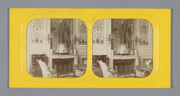 Curator: Looking at this stereoscopic albumen print by Ernest Eléonor Pierre Lamy, titled "Interior of a Hall in the Palace of Versailles," circa 1860-1880, the grandeur is instantly apparent. The architecture dictates a certain level of regal expectation for the contents it holds, wouldn't you agree? Editor: Absolutely, that axial symmetry coupled with the subtle tonal range creates a certain hushed reverence. The light plays exquisitely on the polished floors, highlighting the cool monumentality of the space. But what interests me more is its industrial context. Albumen prints, developed around 1850, signify a shift in photography towards mass production and wider accessibility. How did the circulation of such images reshape the understanding, and perhaps the myth, of Versailles? Curator: That's a salient point about its impact on a wider audience. Note the inclusion of both sculpture and history painting within the photographic frame; the composition presents these various art forms for potential consumerism as collectibles for tourists. Each component carries distinct socio-economic associations. How do we navigate the historical setting in a new age? Editor: Exactly. The albumen print process itself speaks to this. Egg whites, sourced from the poultry industry and combined with silver nitrate. A somewhat domestic product is turned into an advanced technology, capable of preserving, disseminating, and ultimately commercializing what was once an exclusive aristocratic setting. Think about the labor involved in sourcing the albumen. Curator: And consider how the photographic print itself transforms from document to artifact; the material itself taking on historical weight over time as printing methodologies shift. In what ways might Lamy be commenting on how the proliferation of reproducible art flattens the uniqueness of physical experiences or artistic creations? Editor: Well, Lamy isn’t just capturing a space, he’s participating in its reproduction and re-evaluation for a modern audience, even making an item like a photo for our cultural analysis. Curator: Looking at the stereoscopic technique further reinforces that reading of how Versailles, previously only an actual experiential locale for a fortunate elite, becomes, here and now, also a consumable, easily shareable artifact. A layered story of making and meanings. Editor: I think we have indeed revealed something meaningful about how even the process, material, and maker, matter when consuming artworks in this setting. Curator: Indeed, something for visitors to keep in mind when exploring not just this albumen print, but every cultural object around us.