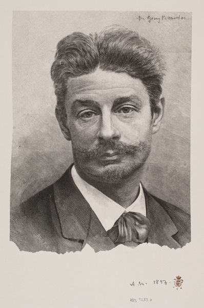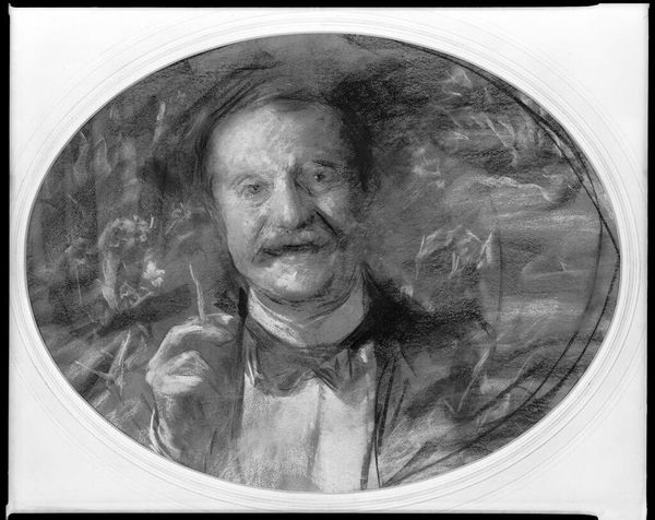 Curator: This is Antonio Mancini’s "Portrait of a Man", currently residing at the Harvard Art Museums. It measures about 63 by 50 centimeters. Editor: My first thought is a theatrical soul! Look at that hair and those whimsical drawings along the bottom—it's like his imagination is spilling onto the canvas. Curator: Interesting, because Mancini was known for his raw, almost brutal realism. We see it in the visible brushwork, the thick application of paint... This technique challenges conventional ideas of portraiture. Editor: Absolutely, it’s not idealized at all. The artist really shows us the grit and character of this man. I wonder if he's an actor, or perhaps a writer caught in a moment of playful distraction? Curator: The painting hints at the social context of artistic production. Mancini often struggled financially, and this work, with its unfinished quality and the man’s seemingly average attire, speaks to a departure from the wealthy patron portrait. Editor: It feels so immediate. Like a fleeting thought given form. It also makes me reflect on the artist himself; how much of Mancini is present in this very human portrayal? Curator: Indeed. Considering the material conditions, the portrait challenges notions of genius and invites us to consider the artist's labor. Editor: It's a reminder that art is not just about beauty, but about people, time, and place. Curator: A powerful connection between the artwork, the artist, and us.