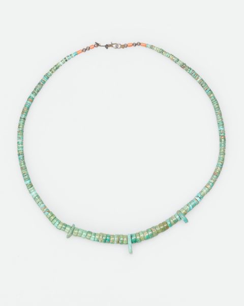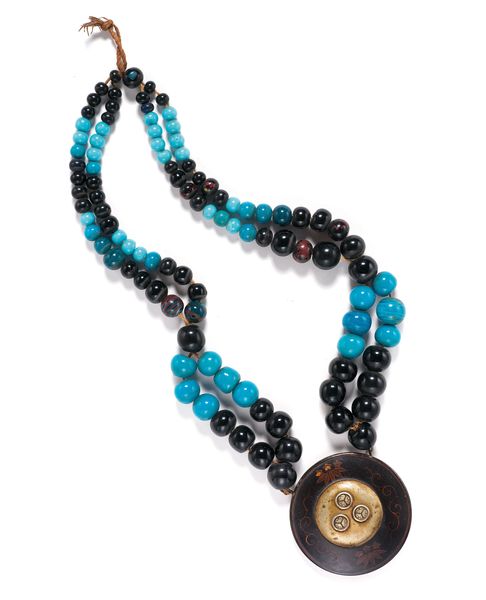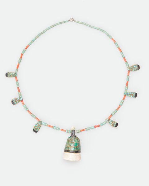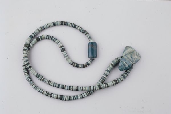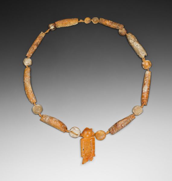 Editor: This is a Chancay necklace made with shell and ceramic beads around the 10th to 16th century. I'm really struck by the contrast between the roughness of the materials and the overall delicate feel. What’s the story behind these materials and their arrangement? Curator: Well, a necklace isn't just decorative; it embodies social and political messages, status, and beliefs of its culture. Consider the accessibility of materials – shell and ceramic. Were these materials commonly available to all members of Chancay society, or did their access dictate hierarchy? The colours and placement, even now, can be quite indicative of identity, affiliations, and even trade networks if certain materials originate elsewhere. Editor: So, the material tells a story? Curator: Exactly. Think about who wore it and when. Was it part of burial rites? Used in ceremonial events? Everyday wear? A necklace could demarcate a leader, celebrate agricultural events, and so much more. How does understanding the societal function impact our modern understanding of the artwork? Editor: It’s almost like deciphering a language through the objects left behind. Are the patterns and colours specific to certain social groups, maybe telling us something about alliances or rivalries? Curator: Precisely! Patterns are not always decorative; they're culturally codified languages. By focusing on patterns and the social life of objects, we can trace these social connections. Editor: I guess it goes beyond simple aesthetics. Thanks, that’s really helpful! Curator: Glad I could help you see beyond the surface and discover historical narratives.