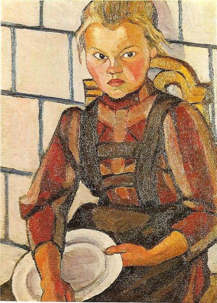 Kuzma Petrov-Vodkin painted this portrait of Lenushka, capturing the vulnerability of childhood with striking candor. Note the child’s gaze; the eyes are moist, conveying a deep, unarticulated sadness. This precise expression echoes across centuries; consider the solemn, introspective portraits of children by Dutch Masters. Here, however, Petrov-Vodkin infuses this shared motif with a raw, modern sensibility. The vulnerability is intensified by the child's small hands resting passively in her lap. It's a universal gesture of supplication we also see in religious iconography, where open hands symbolize humility and receptiveness to divine grace. Yet, in Lenushka, there is no divine presence, only a profound sense of loneliness. The image resonates with collective memories of childhood fragility and our subconscious fears of abandonment and illness, engaging viewers on a deeply empathetic level. The cyclical nature of these human emotions ensures that such images continue to resonate, each new interpretation adding layers of meaning to the original motif.