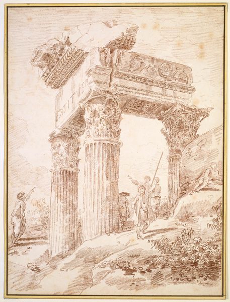 Editor: Here we have David Roberts's 1838 watercolor, "Fragments of a Colossal statue at the Memnonium, Thebes". The ruinous scale of the site juxtaposed with the figures on horseback gives me such a stark feeling of the passage of time. How do you interpret this work? Curator: The painting embodies more than just the "passage of time;" it visualizes the impact of colonial exploitation on ancient civilizations. Roberts romanticizes the decay while implicitly erasing the contemporary socio-political context of the region. Note how the Western figures on horseback are central, subtly reinforcing a Eurocentric perspective, dwarfing the local people. Editor: I see what you mean. It's not just a historical record; it's presenting a particular narrative. Does the medium, watercolor, play into that at all? Curator: Absolutely. Watercolor, with its delicate and translucent quality, softens the harsh realities of archaeological extraction. It aestheticizes what could be considered a form of cultural dispossession. How might we consider the artistic license taken here in contrast with contemporary repatriation movements? Editor: That’s a compelling question. So, Roberts isn't just capturing a scene, but participating in a dialogue – perhaps unwittingly – about power and representation? Curator: Precisely. The painting isn’t just about ancient ruins; it is about the act of looking, interpreting, and ultimately, possessing a cultural history through a Western lens. It also speaks to the West’s fascination with orientalism. Editor: I’ve always seen these paintings as beautiful historical records, but I realize now there's a lot more going on beneath the surface. Thank you. Curator: And thank you for prompting me to consider this piece more carefully. It is a reminder that art always participates in larger conversations about identity, power, and history.