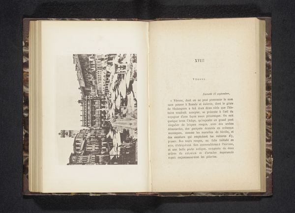 Curator: The work before us is a photograph, titled "Gezicht op de Via Cappello en Casa di Giulietta"—"View of Via Cappello and Juliet's House," if we translate from the Dutch. It was captured sometime before 1889 by an anonymous artist, preserved in a print. Editor: There’s something hauntingly melancholic about this scene. The heavy shadows cutting across the street, the density of the architecture…it almost feels stage-like. What strikes you formally? Curator: I'm intrigued by the interplay of light and shadow you mentioned. Note how the photographer uses these contrasts to create a powerful diagonal composition, directing our eye through the narrow street towards the blurred figures in the distance. The linear perspective, accentuated by the buildings' facades, adds a distinct depth. Editor: And the building of course, we have Juliet’s house and its implied stories of love, of destiny. You have to wonder, don’t you, how many visitors sought to connect with that cultural legacy even then, judging by the crowds it evokes? The photograph certainly makes visible how this place of history carries with it those emotional weights. The repetition of archways in the background alludes to that continuous narrative over time. Curator: A key formal aspect to observe is how the relatively tight focal length compresses the scene, creating a sense of claustrophobia—almost as if we, the viewers, are caught within the unfolding street view, furthering that heavy visual impact you describe. It contributes significantly to the photographic work's texture. Editor: And perhaps contributing also to the symbolic feeling that time, culture and tourism become so intertwined it nearly squeezes the very life out of the present, no? Even then you know these old settings have been re-set in this photograph, for viewing by generations more removed than those who were originally witness. Curator: That's a rather persuasive reading; though one could also argue that the artist sought merely to objectively document a moment in time—a 'snapshot' capturing Verona's urban morphology. Editor: Though even a snapshot has intent. Seeing this has, in fact, provided a lens—pun intended, I suppose—for considering how places accrue emotional narratives across decades. Curator: Agreed. Thinking of its geometry and how we understand linear and spatial features adds a layer, yes, that reveals our human need to experience those symbol-rich places.