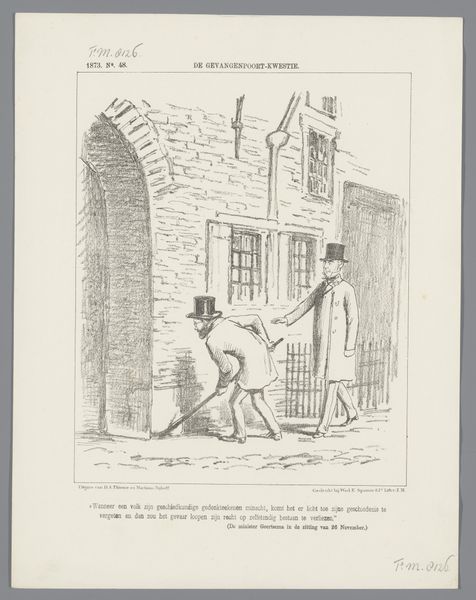This print was made in 1878 by Johan Michaël Schmidt Crans. It shows a tower with a man looking out of the window. The numbers falling from the tower window and the title "In den Schoonmaaktijd" suggest a time of cleaning and change. This print likely comments on the political or social climate of the Netherlands at the time. The falling numbers perhaps represent statistics or data, implying that the government's affairs are no longer about mere numbers. The dead ducks that are present in the lower section of the print are probably a metaphor for something else. To understand the cartoon fully, we would need to delve into the political history of the Netherlands in the late 1870s. Researching political debates, government policies, and social issues of the time would shed light on the print's meaning and provide insight into Crans's critique of Dutch society. The social role of political satire is to foster public discourse and question those in power.