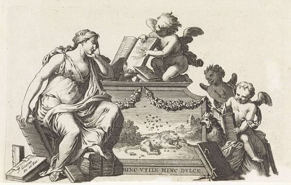 David Coster created this vignette with Mercurius, Minerva en Rechtvaardigheid, using an engraving technique. The intricate lines, achieved through careful incisions on a metal plate, demonstrate the skilled traditions engaged by the artist. The image shows mythological figures amidst symbols of trade, knowledge and justice. It is tied to social issues of labor, politics, and consumption of the Dutch Golden Age. Note the amount of work involved in the production process; each line meticulously carved by hand, resulting in a print that could be reproduced and disseminated widely. Paying attention to the materials, making, and context is crucial in understanding the full meaning of the artwork, challenging traditional distinctions between fine art and craft.