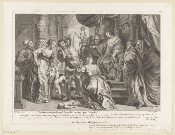 Eugen Eduard Schäffer created this print, "The Introduction of the Arts in Germany by Christianity," in the nineteenth century. Notice the linear precision, typical of engraving, that defines forms and textures across the composition. The scene is organized around a central figure, presumably a Christian figure, acting as a bridge between two groups, suggesting an encounter between classical tradition and Christian influence. Observe how Schäffer uses the landscape setting, with carefully placed trees and architectural elements, to frame the narrative. Linear patterns created through engraving techniques not only describe the characters' clothing and features but also suggest a symbolic layering of historical and cultural identities. The border decoration, adorned with classical motifs, suggests an attempt to harmonize pagan and Christian themes. Consider how the formal aspects of this work invite us to consider the role of art as a medium for cultural exchange and religious transmission. The artist uses precise engraving to create an allegorical representation of cultural transformation, inviting questions about the relationship between art, religion, and national identity.