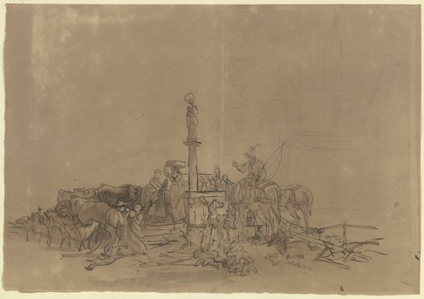 Anton Burger made this sketch of a village road with windmill with graphite on paper. The scene depicts a humble, rural setting, invoking a sense of nostalgia. It’s hard to precisely place the drawing in time without a date, but Burger lived and worked in Germany in the 19th century. We can consider the institutional structures of the art world, like the Dusseldorf Academy, which fostered genre painting. These institutions encouraged artists to depict idealized scenes of peasant life, often overlooking the harsh realities of rural existence. The windmill, a symbol of industry, also indicates human intervention and perhaps a tension between nature and progress. The sketch raises questions about how art portrays rural communities and how social and economic changes shape artistic expression. By consulting historical archives, letters, and exhibition records, we can gain deeper insights into the intentions of the artist. Art like this serves as a window into understanding how society views itself and its relationship to the land.