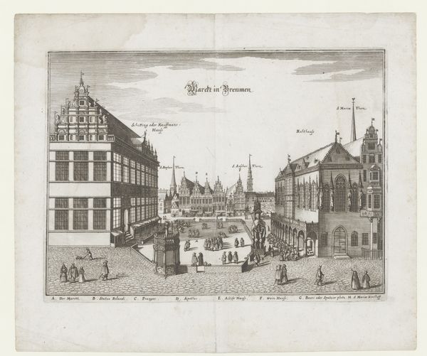 This is an unbound plate used for a book illustration, created by Roeland van Leuve. This image encapsulates the social and architectural landscapes of its time. It offers a glimpse into the cultural values and societal structures embedded within the urban environment. Buildings, far from being mere structures, are embodiments of power dynamics, economic disparities, and community identities. Leuve's illustrations capture the essence of a society where class distinctions were palpable in the architecture itself. The buildings are markers of identity, reflecting the status and aspirations of their inhabitants. Each structure tells a story about the lives, labor, and social interactions of the people who lived and worked within them. The image invites us to reflect on how our built environments shape and mirror the complexities of human experience.