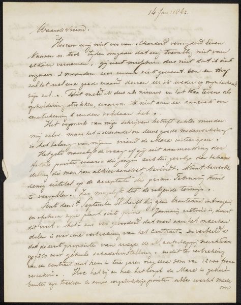Curator: This intriguing manuscript page, dating from between 1819 and 1878, resides within the Rijksmuseum's collection. It’s titled "Handschrift betreffende Emanuel van Meteren" and appears to be a pen and ink drawing on paper. What strikes you initially about it? Editor: An overwhelming density, truly. It feels intensely packed, almost claustrophobic. The script's tight formations create a sea of ink, only broken by the paper's edges. Curator: Indeed. The handwriting of Hendrik Vettewinkel is very dense. While it ostensibly functions as a historical account, don’t you think it transcends mere reporting? Editor: Absolutely. It's rich with symbolic weight. Looking at the detail of that curling flourish in Vettewinkel's signature gives me such a tangible feeling of age and experience. Curator: The account concerns episodes described by Meteren related to the Eighty Years' War and, specifically, the siege of Zierikzee. Notice how the descriptive language elevates this into narrative art, imbuing the depicted events with deeper resonance. Editor: Note also how Vettewinkel carefully deployed his inking skills to give emphasis to parts of his drawing and writing by varying the stroke of his pen; almost to give us an image as we read. He’s offering us a visually reinforced cultural memory. Curator: Precisely, drawing on collective knowledge, embedding those events in a tapestry of understanding. This isn't simply writing; it's actively creating a bridge to shared, lived history. Editor: I appreciate your insights here about both form and function, highlighting how these physical qualities contribute to a more holistic perception, not only of its intended meaning but also of its potential symbolic readings. Curator: And, through this analysis, it reveals how much weight even a document like this can truly carry, doesn't it?