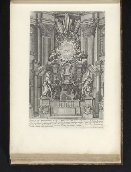 Editor: This drawing from 1884, titled "Herdenking moord op Willem van Oranje, 1584-1884" by Johan Michaël Schmidt Crans, commemorates the assassination of William of Orange. It's rendered in pen and ink, and the subject seems to command attention, though there is some visual chaos that detracts from an immediate impression. What do you make of it? Curator: The strength of this work lies in its masterful use of line and form, qualities we cannot ignore if we are to unlock meaning. Observe the intricate hatching used to define the figure's armor, creating a palpable sense of depth and texture. How would you characterize the use of positive and negative space? Editor: It feels unbalanced, almost like the figure and architecture aren't quite connected. The lines are a little frantic, in a way. Curator: Precisely. The disjunction you perceive, where foreground clashes against background, may emphasize tension between the subject, setting, and medium. Moreover, consider how the artist uses the pen to evoke light and shadow, manipulating them to shape the space within the image. Would you call this manipulation natural? Editor: No, it almost has an unnatural exaggeration to it. The artist wants to push contrast and volume, instead of realistically rendering what's there. Curator: Your eye notices! Even the composition directs us through strategic deployment of perspective and framing, doesn't it? It suggests narrative without literal representation. I'd add that each stroke of the pen bears expressive quality and guides our perception toward symbolic forms rather than purely representational depictions of people or objects. What about the use of ornament, the textual addition; how does that guide our experience with its presence or absence? Editor: This exercise of scrutinizing line, shape, and medium apart from external contexts offers another perspective for the artwork! Curator: Precisely. Understanding the foundational role these play enables you to decode more elusive messages hidden in the work itself.