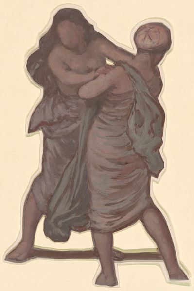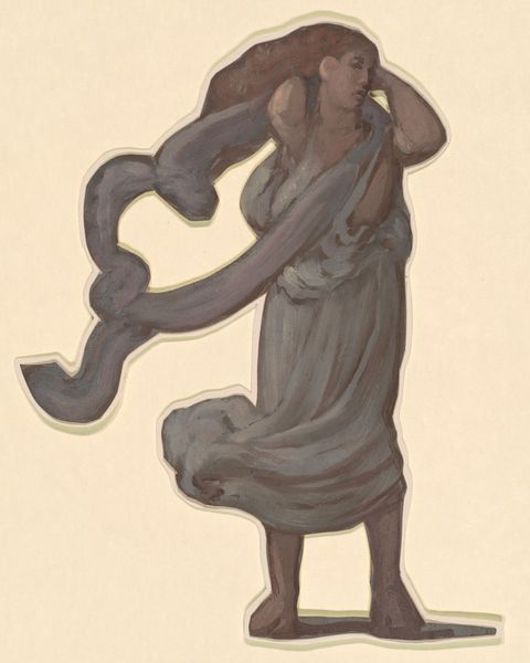Elihu Vedder made this study for "Greek Girls Bathing" with opaque watercolor over graphite on paper. The visible strokes and layered washes show the artist's hand, a deliberate contrast to the classical subject matter, which we might normally associate with highly finished surfaces like marble. Vedder’s muted palette and the somewhat rough application of the watercolor contribute to the sketch's sense of immediacy. It is clear that this is a study, rapidly executed. The layered pigment gives depth and form to the figure, while the textured paper adds another tactile dimension. The artist's engagement with the material reminds us that even classical subjects are filtered through an individual's process and perspective. By emphasizing the artistic process, Vedder blurs the line between the fine arts and the more direct engagement with materials often associated with craft. This piece suggests a reevaluation of classical ideals through the lens of contemporary artistic practice.