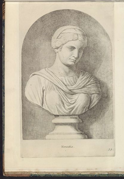 Curator: Before us, we have Hubert Quellinus's print from 1646-1670 titled, “Buste van Pan,” now housed here at the Rijksmuseum. It's an engraving on paper, depicting a sculpted bust of the Greek god Pan. Editor: Immediately, what strikes me is the delicate yet masculine rendering. The subtle shading gives the figure a pronounced weight, and that head is cast slightly downward...there is almost a contemplative or subdued atmosphere to the figure which is unexpected. Curator: That's an interesting reading, especially when we think about the context in which Quellinus was operating. He lived during a time heavily influenced by classical ideals, as this work suggests but there was, in parallel a rise in scientific naturalism. Representations like these offered not just aesthetic enjoyment, but they were studies meant to reflect deeper meanings and intellectual pursuits that had public reception in mind. Editor: Yes, the intersection of scientific and philosophical ideals in the artistic sphere is essential for how these subjects come alive again as a representation. I keep circling back to what that gaze really means in relation to Pan. I think of the freedom and ecstasy Pan is meant to represent—instead, this work invites the audience to see more human aspects in something they probably associate with purely mythical, sensual pleasures. Curator: It's a common artistic conceit; this balance of humanism with symbolic character. The medium too is integral to that duality. This is a print; its relative ease of distribution allowed such an image of Pan to spread far beyond any aristocratic owner to the broader public. So even if he has the traditional faun's horns, you could still have a bit of Pan for everyone! Editor: True, by disseminating an idea of classicism so broadly, it perhaps helped normalize figures that would be ‘othered’ from social ideals. Curator: A lot to consider when a closer look reveals the work, time period, and cultural trends, as well as that sense of subdued grace that it has as a viewing subject. Editor: Indeed. From its social function to how it frames classical archetypes, this depiction is just one perspective on how art changes how people interpret historical narrative, as well as lived experience.