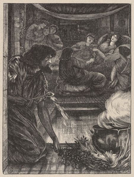 Edward John Poynter created this engraving, "Moses and Aaron Before Pharoah," as part of "Dalziels' Bible Gallery." Poynter was a celebrated Victorian artist who would later become president of the Royal Academy. During this period, the British Empire was at its height, and imperialist ideologies influenced artistic representations of biblical narratives. Poynter's image reflects this context, casting Pharoah and his court in a grand, imposing light, while Moses and Aaron appear as petitioners. It's a depiction that subtly reinforces notions of power and authority aligned with colonialist perspectives. Consider the figures in the foreground, their postures suggesting a mix of awe and trepidation. How does this contrast with the regal composure of Pharoah on his throne? This artwork invites us to reflect on the dynamics of power, faith, and representation, prompting us to consider whose stories are being told and how they are framed.