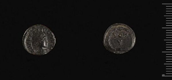 Curator: This is a coin of Cotiaeum under Gallienus, part of the Harvard Art Museums collection, weighing just under 5 grams. Editor: Immediately, I’m struck by the coin’s weathered surface. There’s a stark contrast between the areas still holding detail and the general wear. Curator: Yes, the composition is fascinating. The relief of the bust is partially effaced, yet the overall form retains a captivating legibility. We can still make out the imperial portrait. Editor: I wonder what hands it passed through, what stories it could tell about empire and trade routes, especially during Gallienus' turbulent reign and the Crisis of the Third Century. How does it speak to the power dynamics of the time? Curator: From a formal perspective, the circular form and the etched portrait create a closed composition, drawing the eye into the intricacies of the emperor’s profile. Editor: It’s a reminder that even symbols of power are subject to the forces of history and decay. Curator: Precisely. The coin’s form and subject matter combine to make it a particularly intriguing artwork. Editor: It’s a somber yet profound artifact, indeed.