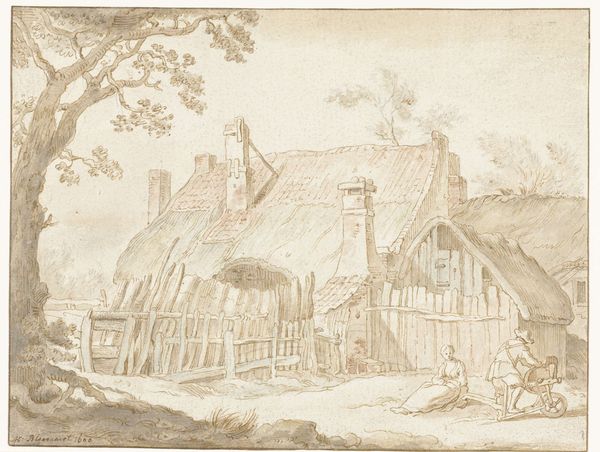 Hendrik Spilman rendered this view of a village with timber-framed houses in pen, brush, and watercolor. Born in Amsterdam, Spilman's work exists within a period of significant social stratification in the Netherlands. The image invites us to consider the historical context of rural life and its representation. The architecture suggests a community rooted in tradition, yet the figures hint at the everyday lives and labor that sustain it. Notice how Spilman's delicate use of watercolor evokes a sense of quietude. Are the figures at the forefront depicted in a way that romanticizes rural life, or does it hint at the complexities of labor and social hierarchy inherent in such communities? How does Spilman’s rendering of this village reflect or perhaps idealize Dutch society? This watercolor becomes a window into the past, inviting us to reflect on the relationship between place, identity, and the subtle narratives embedded in the landscape.