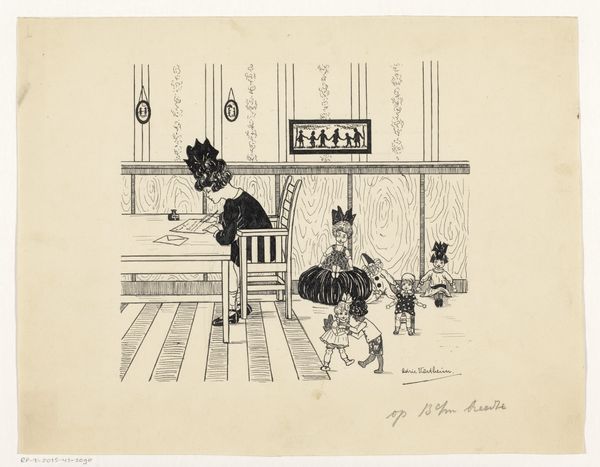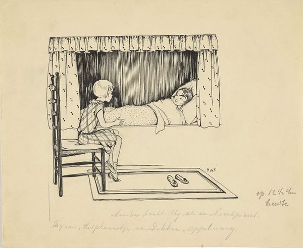 Adrie Vürtheim made this drawing of a girl with a sick bird with pen on paper. I love the way she uses a simple medium like pen and ink to create such a detailed and intimate scene. Look closely at the cross-hatching; it is like Vürtheim is knitting a world into being. The penwork is delicate, almost fragile, which mirrors the tender care the girl is giving to the bird. The small marks add a sense of depth and texture, making you feel like you could reach out and touch the soft feathers of the bird. The way Vürtheim uses the lines to create patterns, from the girl’s dress to the curtains, reminds me of other graphic artists like Gertrude Hermes. There’s a joy in repetition, a celebration of the handmade that I really appreciate. Art isn’t always about big statements; sometimes, it’s the quiet, thoughtful moments that resonate the most.