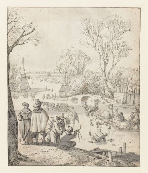 Editor: Here we have "Boerderij," an engraving made between 1832 and 1850, attributed to Erve Wijsmuller. It shows quite a lively farm scene, with various animals and people. The composition feels almost like a catalogue, with each element carefully displayed. What can you tell me about this piece? Curator: It's interesting that you use the word "catalogue," because that touches upon a critical function of imagery like this in the 19th century. While ostensibly depicting a quaint farm scene, consider the print's potential role in shaping perceptions of rural life among urban audiences. How might this idealized image influence public opinion, say, regarding agricultural policy or land ownership? Editor: That's a fascinating angle I hadn’t considered. It almost seems like propaganda. Curator: Not necessarily deliberate propaganda, but certainly image management. The emphasis on the abundance of livestock and the harmonious interaction between humans and animals downplays the harsh realities of farm labour, and speaks to the intended audience's sensibilities. Notice the limited color palette, and relatively simple print technique, reflecting the democratization of imagery that was enabled by this period’s printing innovations. What’s omitted is often as telling as what’s included. Who isn't represented, or what tasks are hidden from our sight? Editor: So, by carefully constructing the image, the artist could be influencing perceptions of rural life? I suppose the clean appearance of everyone implies something, doesn't it? It’s much more than just a charming depiction. Curator: Precisely! These images acted as powerful tools in shaping societal attitudes. Reflecting on its impact, we recognize art's role in reinforcing dominant ideologies, particularly concerning class and labour. Thanks for pointing this one out; it’s a fine reminder for how historical context helps us appreciate even the simplest genre paintings.