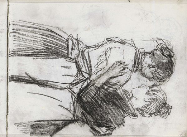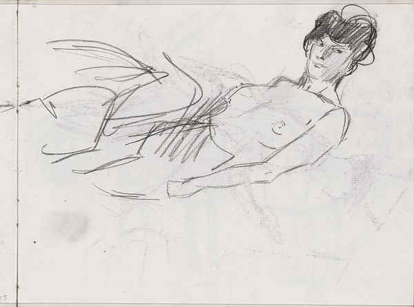 Isaac Israels made this undated drawing, "Standing Female Nude" with a graphite pencil on paper. The texture is raw, as Israels seems more intent on capturing the model's form than polishing the presentation. Israels uses hatching to build volume, particularly noticeable in the torso and thigh areas. This technique is functional, defining shape through shadow rather than contour. The lines feel exploratory, creating a sense of movement and transience, typical of the impressionistic era in which he was working. The composition is asymmetrical, yet the figure commands the space. The model's pose, with one arm extended, destabilizes traditional notions of the static nude, suggesting dynamism and life beyond the pose. Israels' choice of medium and technique is a deliberate act. The sketch quality and lack of refinement underscore the artist's focus on the immediacy of perception. This drawing is not merely a study of form but also an investigation into the act of seeing and representing.