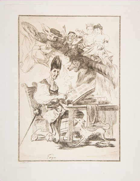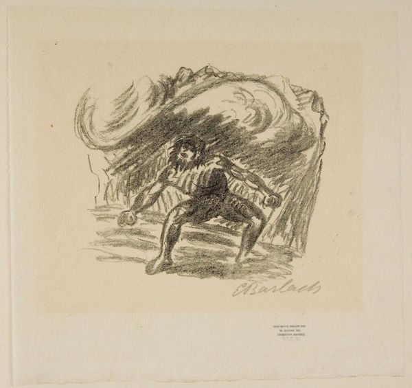 Curator: Ernst Barlach created this image, titled *The Sorcerer's Apprentice 1 [broom is brought to life]*. Editor: Oh, the chaos! It feels like a fever dream, all frantic lines and a very mischievous broom. Curator: Indeed. The image suggests the enduring theme of unchecked ambition, doesn't it? The apprentice seeks power, symbolized perhaps by the animated broom. Editor: I see that, but there's also something darkly humorous about it. The little sorcerer looks genuinely terrified, as if he wasn't prepared for the consequences. Curator: Right, and the broom itself seems to embody a kind of primal force, a cultural memory of folklore perhaps. Editor: It makes me think about how even the most mundane objects can become imbued with symbolic weight. Maybe Barlach is exploring that, too. Curator: An intriguing point. It's a reminder that even in apparent defeat, there's space for deeper exploration. Editor: Absolutely, and that sometimes, the best stories are the ones that catch us by surprise.