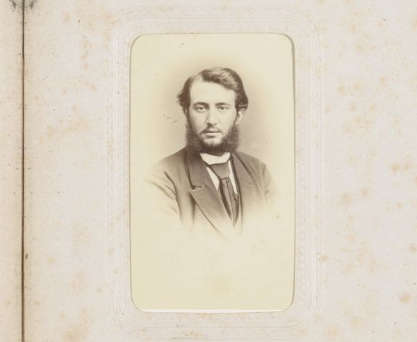 Editor: Here we have an albumen print from between 1850 and 1900, "Portrait of a man with mustache and beard," likely by Louis Koch. The sepia tone and stiff pose give it a sense of formality, but I'm curious—what social narratives might be embedded in this type of portraiture? Curator: This is a fascinating entry point. Think about the rise of photography in the mid-19th century and who had access to it. Portraiture, once reserved for the elite through painting, becomes available to a burgeoning middle class. What does this democratization of image-making tell us about shifting social hierarchies and the desire for representation? How might the sitter in this portrait be positioning himself within those shifts? Editor: That's a great point. The fact that he’s dressed in a suit, has carefully groomed facial hair--it speaks to a certain aspiration. Curator: Exactly. This portrait becomes an assertion of identity and status. But let's also consider the gaze. His direct, yet somewhat reserved expression. What does that communicate? Is he participating in or perhaps even subverting conventional notions of masculinity within his cultural context? We could research photographic portraiture in the Netherlands, particularly of the middle class, during that period. That may allow us to expand on gender roles and political climate at that time. Editor: So by looking closely, we can see that even a seemingly simple portrait offers a rich perspective into the society of its time, and can become a powerful social commentary? Curator: Precisely. It invites us to question what it meant to be seen, and to claim a space within the visual landscape, and further, invites conversations about the subject's socio-economic status and gender identity. Editor: Thanks, this definitely changed how I'll look at portraits from now on. Curator: Indeed, seeing art as cultural mirrors encourages us to consider multiple perspectives on gender, class and race that contribute to creating dialogues.