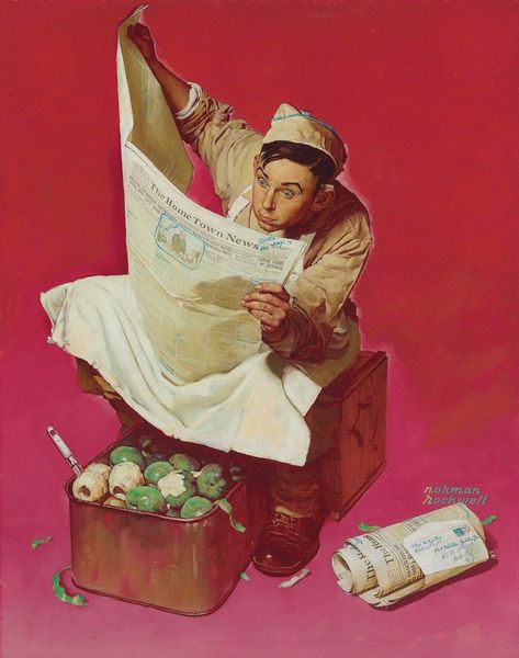 Norman Rockwell created "Radio Phone" using what looks like transparent watercolors over a pencil drawing, and there is something so tender and funny about it. The paint handling is economical, precise but not tight, with thin washes that let the paper breathe. Look closely at the man’s face, and you see little dashes and strokes of red and blue mixing into the pink of his skin. It’s like Rockwell is tuning into the emotional frequency of this scene, capturing the rosy flush of excitement on the man’s cheeks, as his wife reaches to steady him. The moment embodies what it means to share an experience, a sense of mutual curiosity and wonder. Rockwell's approach, with its blend of observation and empathy, reminds me a bit of Edward Hopper's focus on everyday scenes, both inviting us to find beauty in the mundane. In the end, this image is not just about technology, it is about human connection.