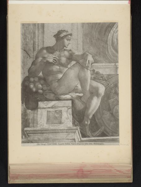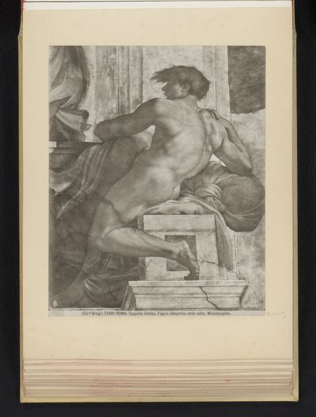 Editor: This is a study, a charcoal and pencil drawing on paper after Michelangelo’s fresco of the Cumaean Sibyl, which sits on the ceiling of the Sistine Chapel, created before 1907. What immediately strikes me is the gravity, the sheer weight of thought etched on her face. How do you see this piece, Professor? Curator: Oh, it's more than just gravity, isn't it? It's a dance between the mortal and the divine, captured in charcoal. Michelangelo’s figures… they breathe, they strain, they practically leap off the ceiling! Look at the muscles in her arms – she's a powerhouse of prophetic knowledge. But notice, too, the tender way she holds the book, the source of her visions. Editor: Absolutely, and that book seems central. Is it possible to know the cultural meaning? Curator: Ah, the Cumaean Sibyl. A priestess, granted immortality but not eternal youth. She holds the prophecies, written in the Sibylline Books, which were consulted by the Roman Senate in times of crisis. Her aging face is, therefore, laden with the weight of centuries of knowledge and foreboding. In some ways a kind of monument to memory itself. Editor: That’s really brought a completely new meaning to the subject for me. Now that I see the fresco in this context I am in awe of the detail and planning behind such works of art! Curator: Yes, the layers of cultural resonance are profound, the artist showing her skill in translation to another form. I never tire of delving into those layers. Every stroke holds a universe. Editor: Well, Professor, this glimpse into the Cumaean Sibyl's world has sparked a desire for new readings in my free time.