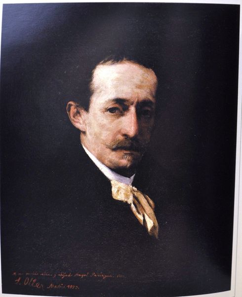 Curator: Here we have Francesco Hayez's "Portrait of the engineer Giuseppe Clerici," painted in 1875. It currently resides in a private collection. What are your first thoughts? Editor: Somber. The oil paint gives a certain weight, a feeling of… seriousness. The dark palette reinforces that, it seems. The man himself is quite stern, as if the very act of sitting was a laborious chore. Curator: That gravity speaks to the subject's position within 19th-century Italian society. Engineers were crucial for industrial progress; commissioning Hayez, a leading artist, emphasized their rising social standing. The portrait itself becomes a political act, announcing Clerici’s place within the burgeoning elite. Editor: I am more drawn to how the texture of the canvas and paint coalesce here. I am quite certain the labor that went into creating the oil, grinding pigments, mixing, all the hands involved to yield the materiality of this painting—the tools, brushes—are equally responsible for his likeness. It is interesting that these "raw materials" shape this idea of the refined engineer. Curator: Well, there's certainly an element of Romanticism in Hayez’s realistic style. He's not just painting a face; he's presenting a pillar of industry, subtly elevating him through artistic skill and portraying a man of that moment—Risorgimento’s Italy! Editor: That “Romantic” skill also translates to precise craftsmanship, which makes me consider the exchange of goods during production; a high-end commission certainly ensured he had premium material access. What price did "quality" exact on others' access to materials and labor? Curator: A vital consideration when looking at the patronage of the arts. So, Clerici’s legacy continues on several fronts here. Editor: Indeed. We witness how industry and artistic craftsmanship both have created, or helped build, a man's legacy.
