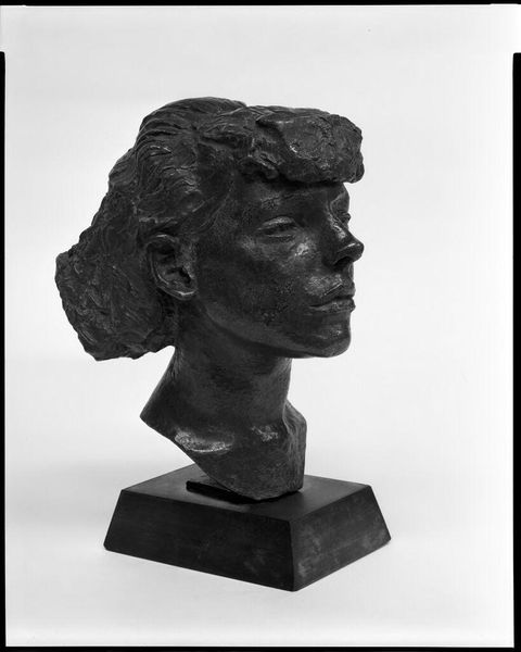 Editor: Here we have Wedgwood's basalt bust of George Washington. It’s incredibly striking how this common material is used to depict such an iconic figure. What can you tell me about it? Curator: Well, consider the means of production. Wedgwood was at the forefront of industrializing pottery. The use of basalt ware, a mass-produced material, in a way democratizes the image of Washington. Editor: So it’s less about the individual artistry and more about the societal impact of the manufacturing process? Curator: Precisely. Wedgwood's factory, the labor involved, and the distribution networks all contribute to the meaning of the piece. It makes us think about consumption and accessibility too. Editor: That gives me a lot to think about regarding the intersection of art, industry, and society!