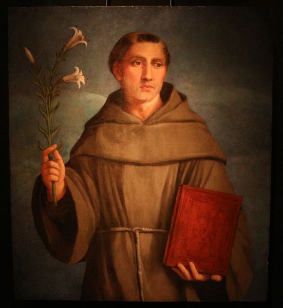 Curator: Standing before us, rendered in tempera, is Carlo Crivelli's "Saint Francis," created around 1470. There's a quiet intensity to this image, isn't there? Editor: Absolutely, the somber mood is what strikes me first. He is enshrouded in introspection; it reads as more of a lament than pious meditation. Is it that the modeling of his face casts such deep shadows? Curator: The light certainly emphasizes a contemplative gravity. Notice how Crivelli positions him in a liminal space, gazing downward toward his book. His body language emphasizes inwardness. This echoes the saint's devotion and focus on a simple lifestyle of quiet service, reflective of the symbolic commitment to literacy that Franciscan monks embraced as essential for religious study and devotion. Editor: But even here, in this so-called simple scene, are layers of representation. Monastic devotion at that time meant social elevation. In this way, the quiet moment contains so much history, referencing class, religious order, and intellectual tradition. Is this work designed to instruct the pious or celebrate them? Curator: I see it as both. The Italian Renaissance placed renewed focus on portraying religious figures as relatable human beings while reaffirming symbolic visual shorthands. This humanization invited connection with ordinary people who were seeking access to the Church’s teachings. Editor: What of the medium? Is the choice of tempera significant, speaking to some prior aesthetic sensibility? Curator: Yes, indeed. Tempera allowed Crivelli incredible detail; look at the halo’s intricate tooling or the careful gradation of the saint’s face and habit. The work maintains its iconographic character while simultaneously incorporating an attention to realistic detail. Editor: Considering what it would have meant for art production and visuality at that time, the work, even when dealing with quiet contemplation, speaks volumes on the power of visual construction. Curator: Yes, even within its stillness, the artwork offers such insights into a very important historical moment. Editor: It leaves us with an enduring understanding of the dynamics between spirituality, visual rhetoric, and material history.