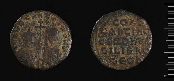 Curator: This is a coin of Constantine VII, a Byzantine emperor from the 10th century. The Harvard Art Museums holds this example, weighing a mere 6.91 grams. It's incredible to think of the power such a small object once represented. Editor: My first impression is its wear, the way history has etched itself into the metal. It speaks of transactions, of hands, of a world long past. Curator: Indeed. Consider the historical context: Constantine VII aimed to solidify his rule, and currency played a crucial role in projecting imperial power and legitimizing his reign. Editor: Absolutely. The imagery—the cross, the inscriptions—would have been carefully chosen to communicate specific messages about authority and religious endorsement. What narratives were prioritized and whose stories were intentionally excluded? Curator: An excellent question. The coin served as propaganda, reinforcing the emperor's divine right. Today, it offers a tangible connection to the Byzantine world. Editor: Right, it lets us think about the legacies of power and how certain narratives get imprinted, quite literally, onto the collective memory. Food for thought, isn't it? Curator: It certainly is, and a reminder of how art can function as both historical document and political tool.