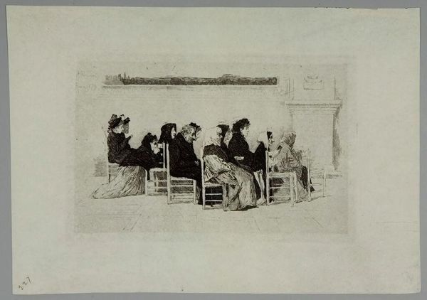 Curator: Eugène Boudin's work, "The Beach at Trouville," presents a fascinating glimpse into leisure and society. I am drawn to the artist's use of watercolor to render this coastal scene. Editor: It feels somewhat melancholic, doesn’t it? Despite being at the beach, there's a formality and a separation between the figures. I am also captivated by the sketch-like quality, like a stolen moment. Curator: Absolutely, the composition’s reliance on line and color invites analysis. Note how the parasols and figures are delineated—Boudin utilizes contour lines to capture the ephemeral essence of a fleeting scene. This aligns with Impressionist ideals despite some unfinished aspects. Editor: This resonates with me as well! But what is this tableau implying about 19th-century societal structure? Observe how people maintain certain appearances even in a space of supposed relaxation. Are we seeing the constraints placed upon women, their identities concealed beneath layers of fabric? Curator: You raise intriguing points! We should also note the materiality—Boudin’s rapid brushstrokes emphasize the play of light upon surfaces and figures. It is all captured by subtle modulations of tone in washes. These were probably composed on site, en plein air. Editor: And aren’t such artistic choices indicative of changing power dynamics? Art was beginning to explore the nuances of ordinary lives outside officialdom’s dictates. Consider the artist’s commitment to portray modern life with accuracy. It speaks volumes! Boudin subverts elitist ideals by honoring everyday subjects with artistry. Curator: I see your point, and can concede how technique is never neutral. However, these more philosophical avenues should also take note that the loose rendering of details prioritizes sensation. Consider also how its success resides with the effective formal vocabulary on display. Editor: It's undeniable that “The Beach at Trouville" encapsulates broader cultural currents; art engaged with challenging traditional forms to confront reality during transformations of modernization. It’s that tension that interests me most! Curator: The enduring appeal then of “The Beach at Trouville” by Boudin lies in its intersectional narrative. It engages artistic skill to subtly negotiate boundaries, to speak to an era caught amid rapid change. Editor: Yes! Beyond form alone, and as an index of evolving consciousness too—making for so many layers.
