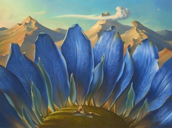 "Claws of Fate" was painted by Vladimir Kush using oil paint, a traditional medium valued for its versatility. Kush uses the slow-drying property of oils to create subtle gradations of tone and color across the canvas. This lends a dreamlike atmosphere to the scene, where a butterfly stands perched atop a craggy peak, menaced by swooping birds of prey. Oil paints' ability to be layered and blended allows Kush to model forms with precision, from the delicate wings of the butterfly to the imposing silhouettes of the birds. The subject matter emphasizes the precariousness of existence. Oil paint, in its smooth application, belies the tension of the scene. The use of the medium highlights the labor involved in the artwork, with each brushstroke contributing to the overall effect. Ultimately, considering both material and subject allows us to appreciate the artist's skill in crafting a visual narrative that speaks to broader themes of survival and the transient nature of beauty.
