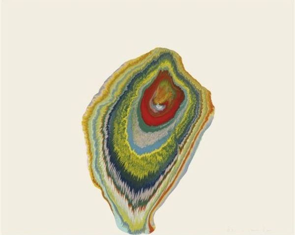 Curator: This is Abdul Mati Klarwein’s “Timeless,” painted in 1968. The artist worked primarily with acrylic paint. Editor: What strikes me immediately is how disorienting yet mesmerizing it is, with its spiraling form dominating the space. The color palette feels very grounded yet almost artificially rendered. It looks like an organic element being pulled into technological space. Curator: Yes, there's a very interesting interplay there. Klarwein himself pushed boundaries between high art and commercial work, even designing album covers. This work resonates deeply with psychedelic aesthetics popular at that time. We could contextualize this exploration within a period of shifting material culture. What do you see there? Editor: I find the repeating face along the edge deeply symbolic. It recalls, perhaps unintentionally, cyclical understandings of time within Indigenous epistemologies that have been historically othered. What are we to make of its re-emergence within the mainstream cultural conversation of the '60s? Who has access to concepts of ‘timelessness’? Curator: That tension between access and abstraction is definitely present in Klarwein’s work. He pulled imagery from diverse cultural sources, blending them in ways that reflect a contemporary mode of production and circulation. In my opinion, it suggests a sort of democratization of visual motifs through art making. Editor: Interesting—yet considering it was painted in 1968, the year Martin Luther King Jr. was assassinated, alongside a proliferation of resistance movements in response to capitalist exploitation across the globe, how do we situate these forms and figures as more than mere stylistic appropriation in response to ongoing oppressions? Curator: Those are difficult and necessary questions. What I find especially compelling is that this tension is exactly what the painting leaves the viewer with; what possibilities can you make with it? Editor: Precisely. We're left to grapple with how we navigate these complex intersections, both within the painting and in the world it reflects and responds to.