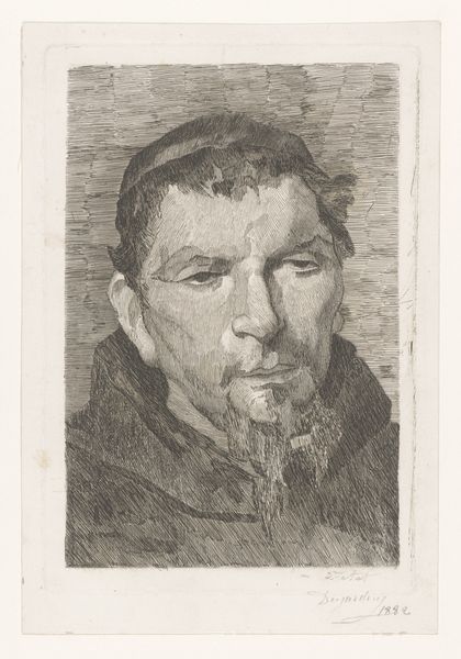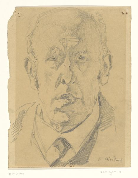 Johan Henri Gustaaf Cohen Gosschalk rendered this portrait, "Kop van een Huizer boer," with what looks like colored chalk or pastel on paper, resulting in a hazy, soft-focus image. It's all about process: the marks build up to create this man’s likeness. I am struck by the way the artist’s hand lingers on the ruddy cheeks of his sitter, the blueish tone of his eyes. The colors are subtle, like a memory fading in time, yet the texture has a palpable quality to it, you can almost feel the roughness of the paper beneath. The overall effect is both intimate and distant, like overhearing a conversation across a crowded room. There's something about the directness of this portrait that reminds me of the work of Alice Neel, another artist who wasn't afraid to capture the raw humanity of her subjects. Like Neel, Gosschalk seems less interested in perfect representation and more invested in conveying the essence of a person, and art, after all, is about asking questions rather than providing answers.