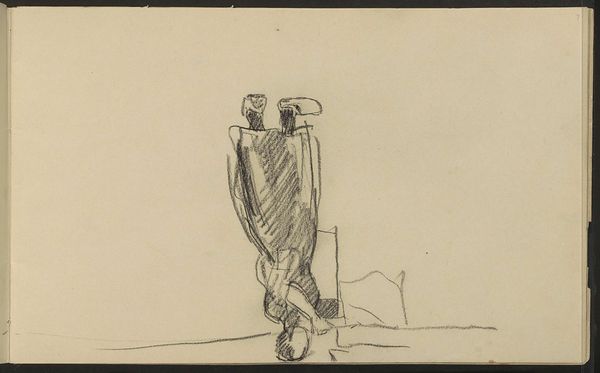 Editor: This is "Two Figures" by John Singer Sargent, a small graphite sketch at the Harvard Art Museums. They appear to be wearing some sort of uniform. How do you interpret this work, given Sargent's other subjects? Curator: It's fascinating to see Sargent focusing on figures removed from his usual elite portraiture. The traditional dress could signify a specific community or societal role. How might this sketch challenge or reinforce existing power structures of the time? Editor: That’s interesting; I hadn’t considered it from a power perspective. I was too focused on the aesthetic. Curator: Exactly. Consider the role of institutions in shaping artistic narratives. Museums, through their curation, influence how we understand art's relationship to society and history. Editor: So, a simple sketch can reveal complex socio-political dynamics if we look at the bigger picture. Thanks!