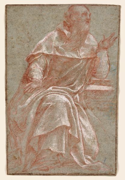 Bartolomeo Cesi made this drawing of a standing monk with red chalk sometime between the late 16th and early 17th centuries. Chalk is a humble material, easily accessible and relatively inexpensive, which makes it ideal for preparatory sketches. However, the way Cesi coaxes volume and shadow from such an unassuming material is anything but commonplace. The strokes of red create a sense of depth, particularly in the folds of the monk’s habit. The texture of the chalk adds a soft, almost ethereal quality to the figure. Note, too, how the drawing emphasizes the dignity of labor; Cesi lavishes attention on the texture of the monk’s clothing, as though to ennoble the cloth itself. So, while this may seem like a simple sketch, it’s a study in the transformative power of materials. Cesi elevates the commonplace through his skill, reminding us that true artistry lies not just in the subject, but in the making.