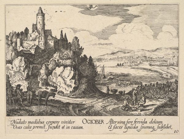 Editor: So, this is "Die Festung Gam," created in 1647. It's a print – an etching and engraving – and it looks like a landscape, maybe with some history-painting elements. There's a real sense of depth created through all those fine lines. How do you read this piece? Curator: I am immediately struck by the intricate process that went into creating this image. The artist is presenting "Die Festung Gam," but equally showing us the labor and technical skill involved in etching and engraving. We see a landscape, but rendered through the very particular means of 17th-century printmaking. The choice of etching and engraving—processes which allowed for mass production—makes me wonder about the intended audience and distribution of this image. Was it meant for scholarly purposes? Editor: That's interesting. I was focused on the castle and how it dominates the composition, but you’re drawn to the printing process itself and who it’s for! Does the social context play into that at all? Curator: Absolutely! The act of reproducing this image and circulating it using a mechanical method meant it had a wider distribution. Printmaking, and how it democratized the art viewing experience, and furthermore, perhaps also provided revenue for the artist is important to note here. Who was he hoping would acquire the prints? Why this scene and these means? Consider the labor involved - the etching, the inking, the pressing, versus what was available with other mediums during the era, and how accessibility would vary. These are important issues to remember when encountering pre-modern images like these. Editor: I see what you mean. It’s less about the "what" and more about the "how" and the "why." Thanks so much, I’ve got a lot to think about! Curator: My pleasure! Now go forth and question the modes of production!