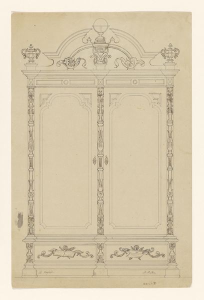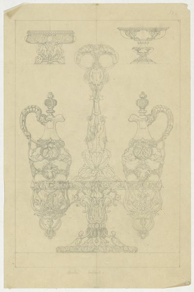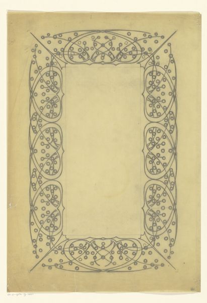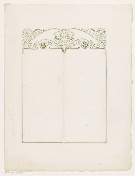 This ‘Frame for Five Signatures’ was made by Reinier Willem Petrus de Vries, presumably to be a presentation piece for a group of people, likely colleagues. The drawing is rendered in pencil and opaque watercolor. The frame is rendered with stylized motifs. The repeated floral and foliate patterns are hallmarks of the Art Nouveau style. De Vries was trained in decorative arts, so this design reflects the kind of precise draftsmanship needed for commercial production. The original signatures would have been inscribed within the spaces indicated, making it a collaborative piece. Consider how this drawing relies on the labor of many hands: de Vries as the designer, and the five people who would eventually sign it. It makes you think about the social life of design. By understanding the materials and the making process, we start to see how this drawing transcends traditional boundaries of art and craft, inviting us to appreciate the artistry inherent in everyday life.