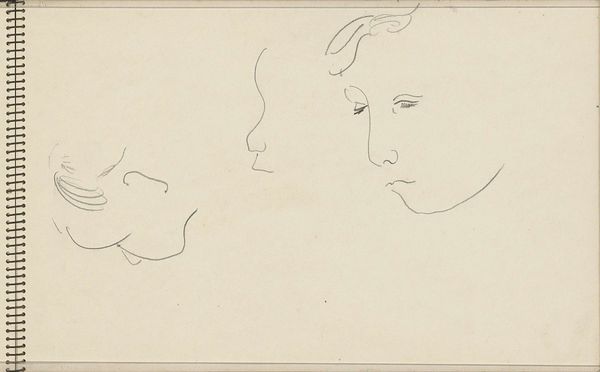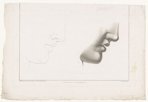 Editor: Here we have "Five Studies of Noses, Mouths, and Chins" by Jean Augustin Daiwaille, created between 1820 and 1826. It's a pencil and graphite drawing. What strikes me is how academic and almost scientific these studies are; like a page out of a textbook. How would you interpret this work? Curator: What I find interesting is how this sketchbook page highlights the institutional frameworks of art education in the 19th century. These types of exercises were common practice in academic art training, designed to instill an understanding of proportion and idealized forms. This also indicates the development of art appreciation as it was available at the time to view or for the purposes of being able to depict them to sell. Editor: So it was really about learning the rules, rather than individual expression? Curator: Precisely. Consider how art academies operated. They promoted specific aesthetic ideals. Think about the market, the patronage system that favored Neoclassical or Romantic portraiture at the time. Skillful rendering of features was prized. What function do you think that fulfilled in society? Editor: Perhaps to portray subjects in a favorable or ideal manner? Or for other portraitists to learn from his examples? Curator: Yes, portraiture reinforced social hierarchies, constructed identity, and perpetuated status through representation. This sheet then speaks to art's role within this complex visual economy. What kind of patron may this be suitable to, with such an affordable medium and aesthetic? Editor: It's fascinating to consider how seemingly simple drawing studies can reflect larger social and political dynamics! Now I look at the sketchbook, and it's less neutral to me. Curator: Exactly, these academic exercises participated in a much broader visual culture! Examining these 'fundamentals' makes one consider the very building blocks of that visual culture. It goes to show how the seemingly mundane can hold layers of meaning when viewed within its historical context.