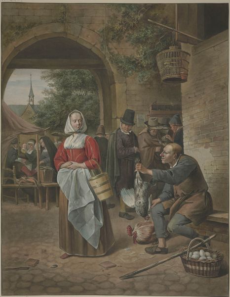Cornelis Dusart painted this scene of a “Country Inn” with oil on panel sometime in the late 17th century. The choice of oil paint—pigment suspended in linseed or walnut oil—allows Dusart to build up layers of color and detail, creating a rich, luminous surface. The panel support, likely oak or poplar, lends a subtle warmth to the painting and provides a smooth surface for fine brushwork. Look closely, and you’ll notice how the artist varies his technique, from the precise rendering of faces to the looser, more expressive brushstrokes used to depict the foliage. Consider too, what this scene represents: a moment of leisure for the working class. Dusart transforms the humble setting of a rural inn into a stage for human interaction. He elevates the everyday into art, inviting us to contemplate the lives and labor of those often overlooked. His mastery of materials and technique serves not only aesthetic ends, but also provides a window into the social and cultural fabric of his time.