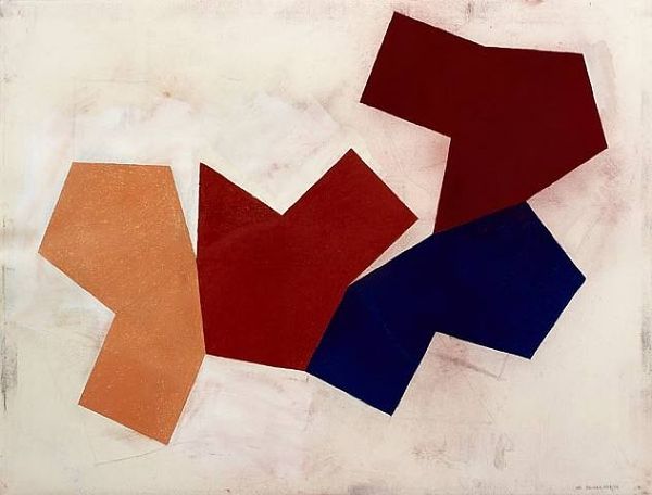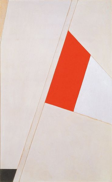 Curator: Mel Bochner's "Vector," created in 1977, immediately presents a bold, geometric composition using drawing medium. The simple color palette and arrangement of forms lend it an almost iconic quality. Editor: It strikes me as a visual challenge, this "Vector." It's a clash of geometric forms – red, blue, pink, and white – awkwardly sharing space. There is tension, as though some of the forms are battling with the picture's flatness and attempting to advance to the foreground. Curator: Well, Bochner was deeply engaged in the conceptual art movement. He questioned how we perceive and understand space, language, and mathematical systems, so it's natural to see challenges within these formal constraints. It's more about the idea than the object itself, even its beauty, though of course, that's subjective. Editor: That idea being the deconstruction of spatial relationships? Looking at this today, in light of digital abstraction and deconstruction, I consider how it could function as a premonition of contemporary issues involving materiality versus abstraction, for instance, or gender performativity where tension underscores what appears deceptively fixed. Curator: Absolutely. Bochner challenged the traditional notions of drawing, too. Rather than representational or expressive, this drawing acts almost as a diagram or proposition. And in this particular period, his work often mirrored the linguistic philosophy trending in intellectual circles that explored relational statements and truth conditions. Editor: It’s almost disruptive, right? Because one could ask, ‘what truths are illuminated here?’ If one’s truths are socio-political, where is the critique? It may appear deceptively benign or simply formal. That is one reason the social and political conditions of the moment in which this drawing was executed are quite relevant to any experience of it now. What social forces may have influenced this artist’s trajectory? Curator: It’s a fascinating discussion point. Perhaps Bochner was deliberately using abstraction as a kind of safe space, a subtle commentary within a very polarized political climate, where direct expression was fraught with difficulty and likely subject to surveillance. Editor: I agree. And even if that wasn't the specific intent, engaging with "Vector" forces us to acknowledge the power dynamics at play. The stark colors demand a certain attentiveness from the viewer, which feels appropriate to this current cultural moment. Curator: A powerful thought that really brings this somewhat obscure but remarkable artwork alive! Editor: Indeed! And thinking about this in new contexts illuminates the many social facets and functions of art-making today.