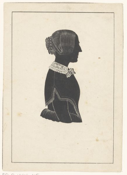 Here we have Gerrit Jacobus Geusendam’s delicate silhouette of a Frisian woman. Rendered with graphite, this artwork offers a lens into the representation of regional identity during the late 18th and early 19th centuries. The silhouette, popular at the time, was an accessible form of portraiture but also a signifier of status and identity. Here, the sitter's elaborate Frisian cap, adorned with lace, speaks to the unique cultural identity of Friesland and the importance of regional pride. The stark black silhouette against the plain background invites us to consider the interplay between visibility and concealment, and the ways in which identity is both performed and perceived. Consider how Geusendam’s work, while seemingly straightforward, opens up broader conversations about gender, regionalism, and the construction of cultural identity. It emphasizes not just what is seen, but what the artist chooses to reveal, and what remains in shadow.