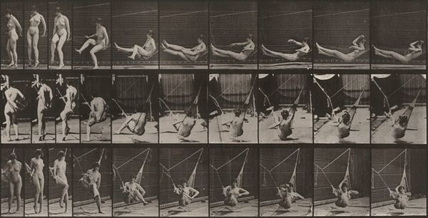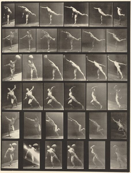 Eadweard Muybridge created this albumen silver print of an acrobat in the late 19th century. It’s one of many plates from his series *Animal Locomotion*, which sought to capture and analyze movement through stop-motion photography. Beyond its scientific aspirations, this image is also deeply embedded in the social and cultural context of its time. The late 1800s witnessed the rise of modern sports and physical culture, accompanied by new ideas about the body and its capabilities. Muybridge’s photographs tapped into that fascination, offering a novel way to dissect and understand human movement. His work was sponsored by the University of Pennsylvania, reflecting the growing institutional interest in scientific approaches to the study of the human form. The image is both progressive and problematic. While it embraces the potential of technology to expand knowledge, it also reinforces a visual culture that objectifies and dissects the human body. To truly understand Muybridge's work, we can explore the archives of scientific institutions, sports organizations, and visual culture. By engaging with these sources, we can understand the complex interplay between art, science, and society in the late 19th century.